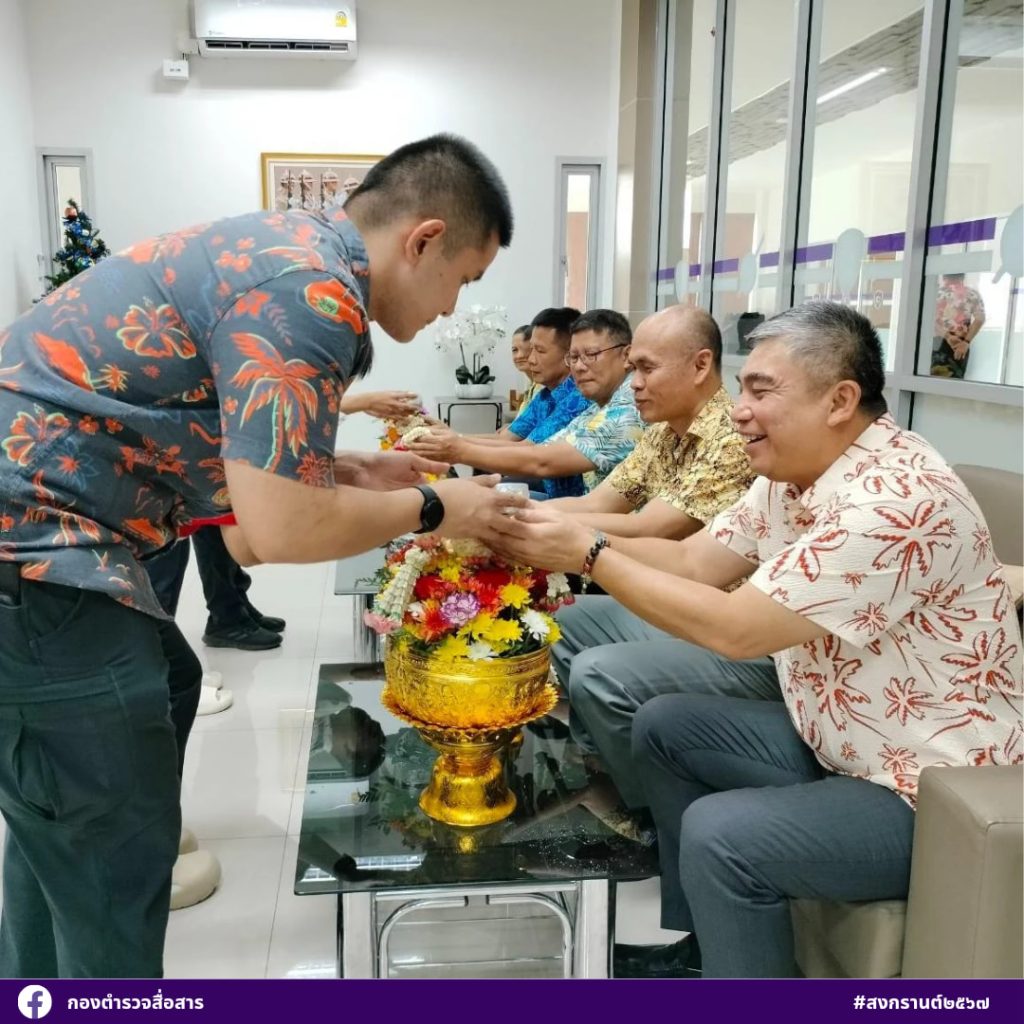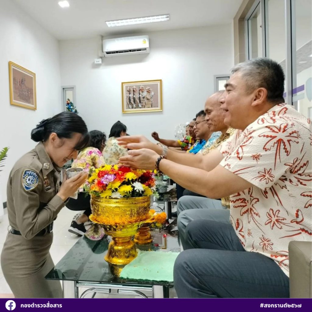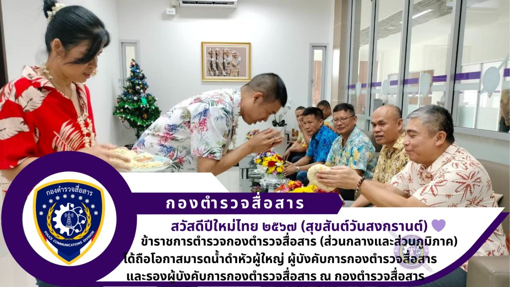 เนื่องในวันสงกรานต์ ข้าราชการตำรวจกองตำรวจสื่อสาร (ส่วนกลางและส่วนภูมิภาค) ร่วมรดน้ำดำหัวผู้บังคับการกองตำรวจสื่อสาร และ รองผู้บังคับการกองตำรวจสื่อสาร ในเทศกาลวันสงกรานต์ไทย ๒๕๖๗