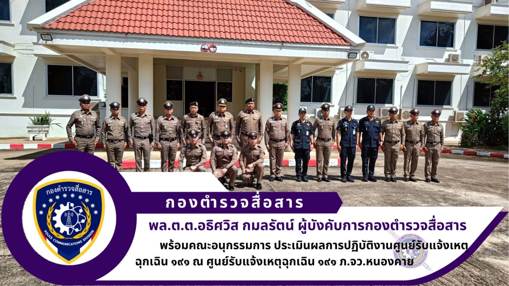 คณะอนุกรรมการประเมินผลการปฏิบัติงานศูนย์รับแจ้งเหตุฉุกเฉิน ๑๙๑ ดีเด่น ตร. ทีม ๒ ภายใต้การนำของ พล.ต.ต.อธิศวิส กมลรัตน์ ผบก.สส. เข้าทำการตรวจประเมิน ศูนย์รับแจ้งเหตุฉุกเฉิน ๑๙๑ ภ.จว.หนองคาย