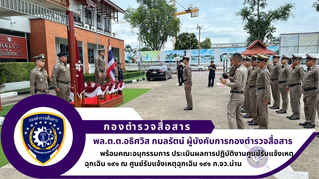 คณะอนุกรรมการประเมินผลการปฏิบัติงานศูนย์รับแจ้งเหตุฉุกเฉิน ๑๙๑ ดีเด่น ตร. ทีม ๒ ภายใต้การนำของ พล.ต.ต.อธิศวิส กมลรัตน์ ผบก.สส. เข้าทำการตรวจประเมิน ศูนย์รับแจ้งเหตุฉุกเฉิน ๑๙๑ ภ.จว.น่าน