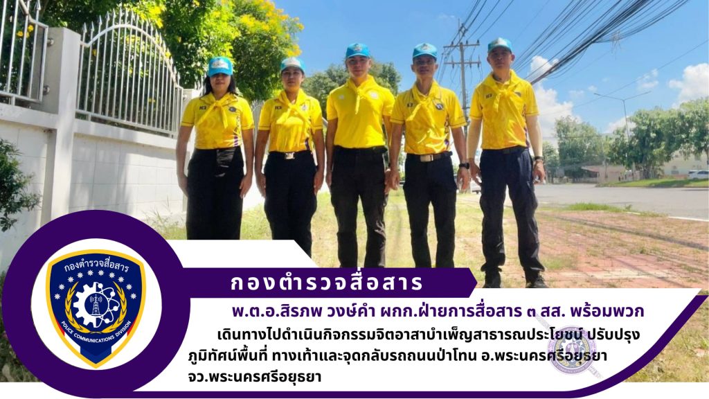 วันนี้ ( ๒๒ ตุลาคม ๒๕๖๗) ฝ่ายการสื่อสาร ๓ สส. นำโดย พ.ต.อ.สิรภพ วงษ์คำ ผกก.ฝสส.๓ สส., ร.ต.อ.ธีระ วิสาระพันธ์ รอง สว.ฝสส.๓ สส. พร้อมข้าราชการตำรวจ ฝสส.๓ สส. รวม ๕ นาย ดำเนินกิจกรรมจิตอาสาบำเพ็ญสาธารณประโยชน์ ปรับปรุงภูมิทัศน์พื้นที่ ทางเท้าและจุดกลับรถถนนป่าโทน อ.พระนครศรีอยุธยา จว.พระนครศรีอยุธยา เพื่อลดความเสี่ยงการเกิดอุบัติเหตุทางถนน เนื่องในวันนวมินทรมหาราช และวันปิยะมหาราช