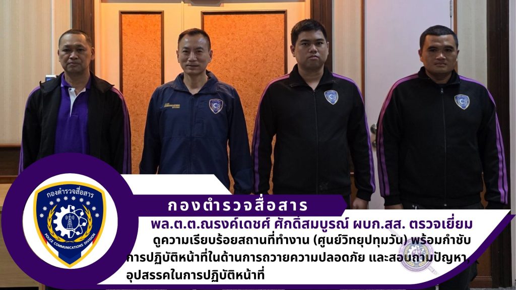 พล.ต.ต.ณรงค์เดชศ์ ศักดิ์สมบูรณ์ ผบก.สส. ได้เดินทางมาตรวจเยี่ยมดูความเรียบร้อยสถานที่ทำงาน (ศูนย์วิทยุปทุมวัน) พร้อมกำชับการปฏิบัติหน้าที่ในด้านการถวายความปลอดภัย และสอบถาม ปัญหา,อุปสรรคในการปฏิบัติหน้าที่