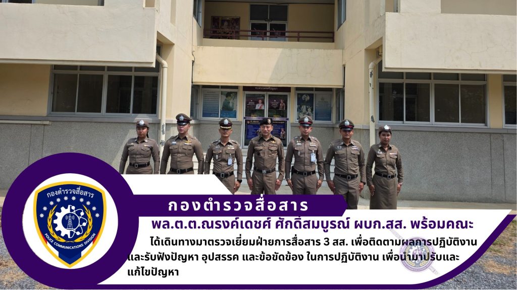โดยมี พ.ต.อ.สิรภพ วงษ์คำ ผกก.ฝ่ายการสื่อสาร 3 สส. และข้าราชการตำรวจฝ่ายการสื่อสาร 3 สส. จำนวน 5 นายให้การต้อนรับ และรายงานผลปฎิบัติ ปัญหา อุปสรรค และข้อขัดข้องให้ทราบ