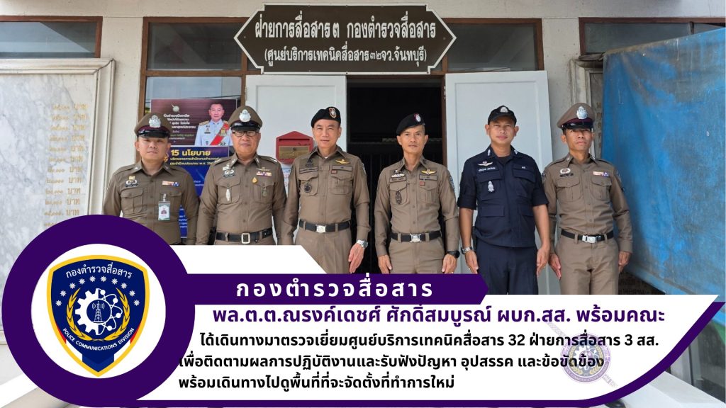 โดยมี พ.ต.อ.สิรภพ วงษ์คำ ผกก.ฝ่ายการสื่อสาร 3 สส., พ.ต.ท.วรัณรุตม์ แสนวิเศษ รอง ผกก.ฝ่ายการสื่อสาร 3 สส., ว่าที่ พ.ต.ต.จิรบูรณ์ ธนะสูตร สว.ศูนย์บริการเทคนิคสื่อสาร 32 ฝ่ายการสื่อสาร 3 สส. และข้าราชการตำรวจศูนย์บริการเทคนิคสื่อสาร 32 ฝ่ายการสื่อสาร 3 สส. ให้การต้อนรับ และรายงานผลปฎิบัติ ปัญหา อุปสรรค และข้อขัดข้องให้ทราบ