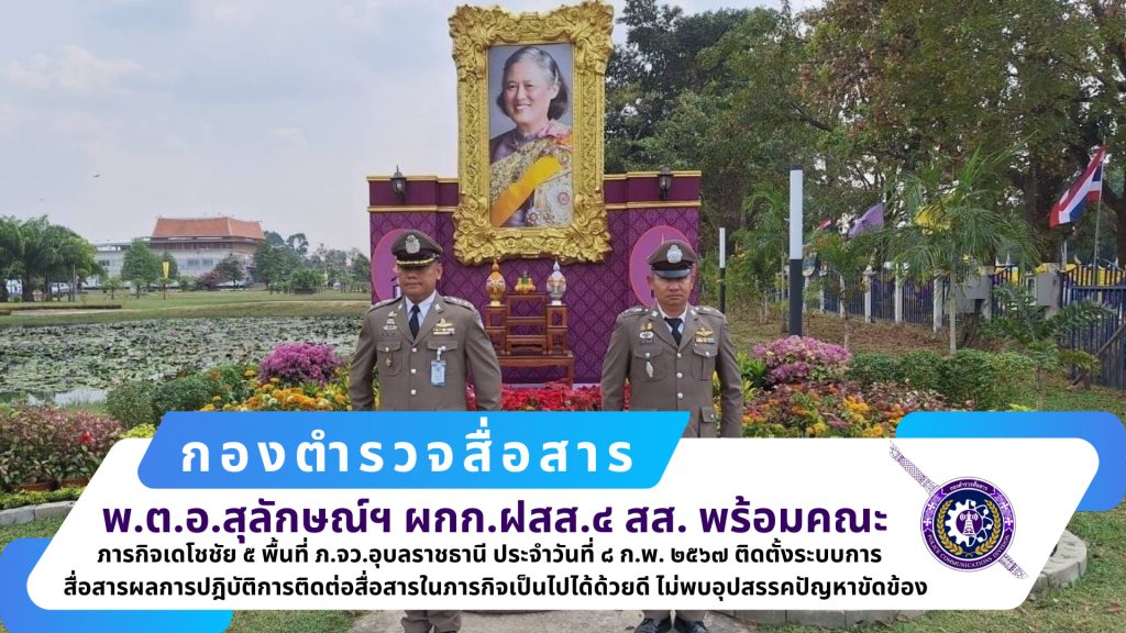 ภารกิจเดโชชัย ๕ พื้นที่ ภ.จว.อุบลราชธานี ประจำวันที่ ๘ กุมภาพันธ์ ๒๕๖๗ ติดตั้งระบบการสื่อสาร ผลการปฎิบัติการติดต่อสื่อสารในภารกิจเป็นไปได้ด้วยดี ไม่พบอุปสรรคปัญหาขัดข้อง